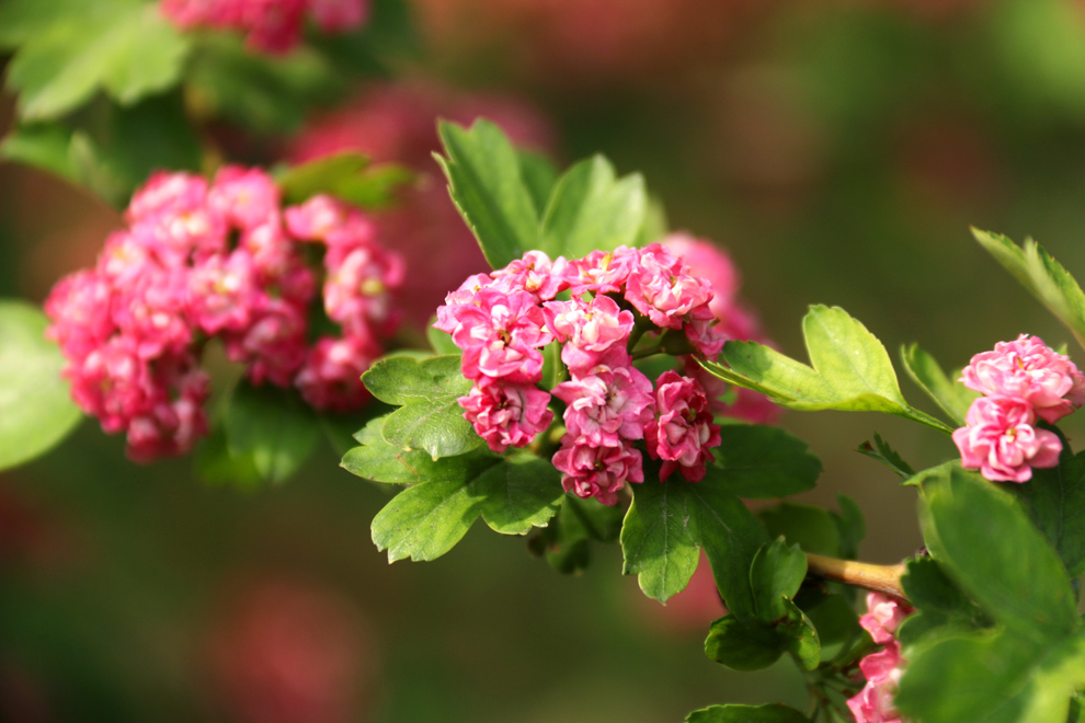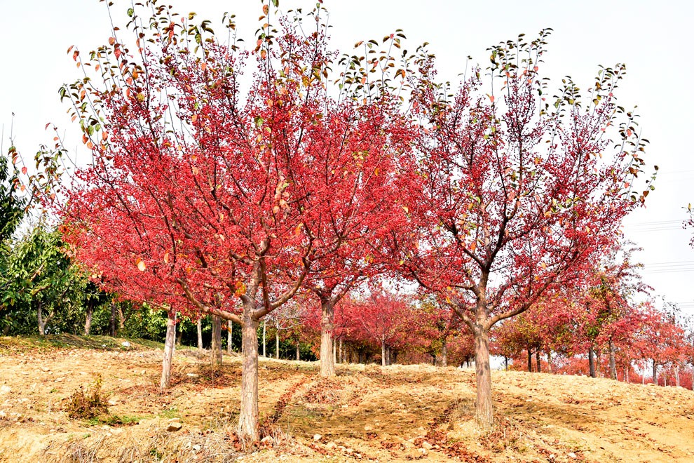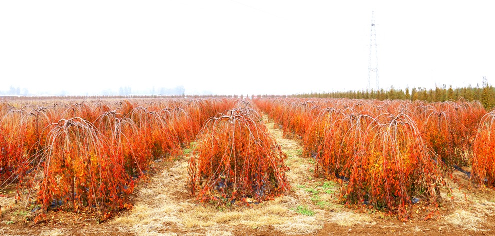 也具有多个品种,春花有白色、红色、玫红色、粉红色,花量大,有重瓣与单瓣。冬果均呈红色,是主要的观花观果类苗木。