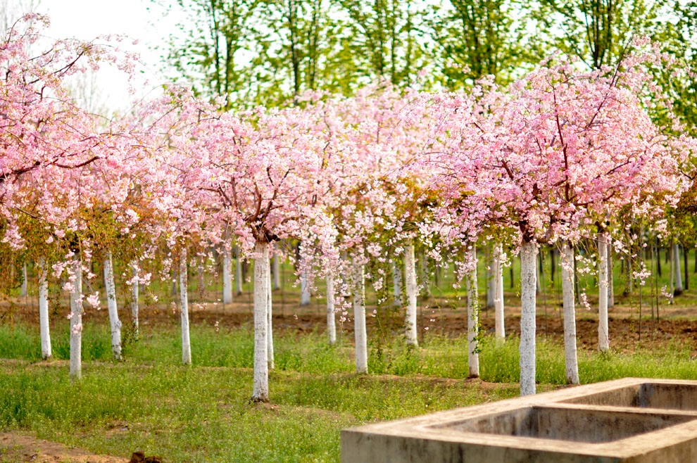 春季开淡粉色小花量多,是观花类苗木的代表之一。同时还是三季观叶品种,花期后随之萌发出大量的紫红色叶片,叶色直至秋季。