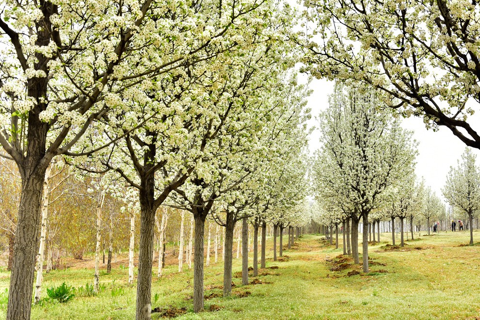 冬季也可观其树形,有树冠狭窄,枝条向上生长好似高脚杯的品种,有树冠开阔,侧枝粗壮,形态规整的品种。