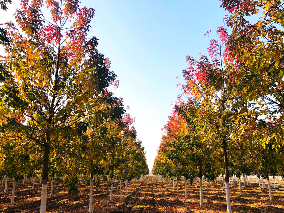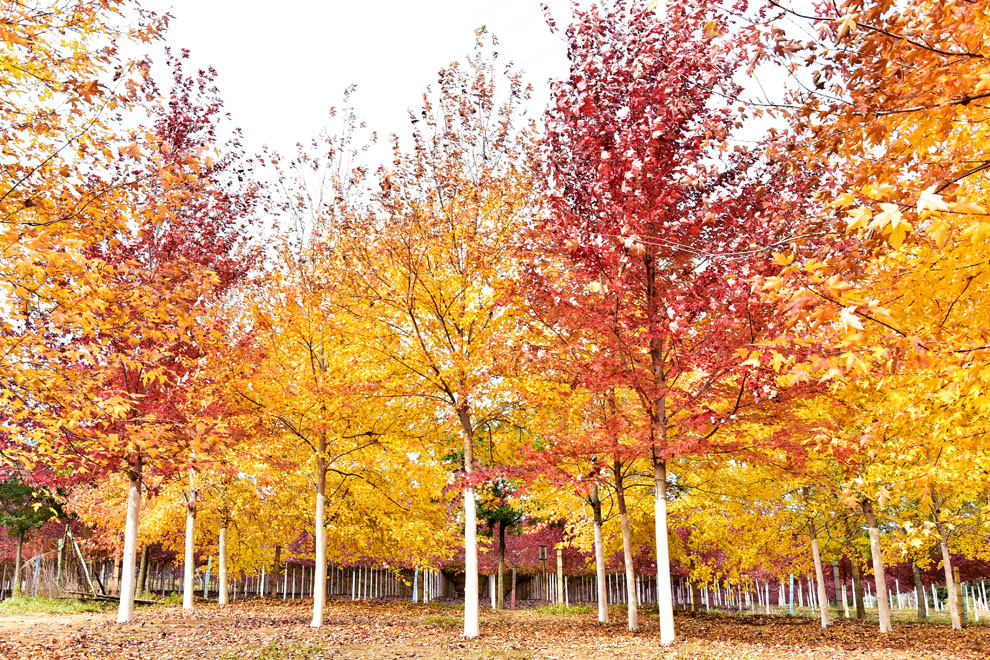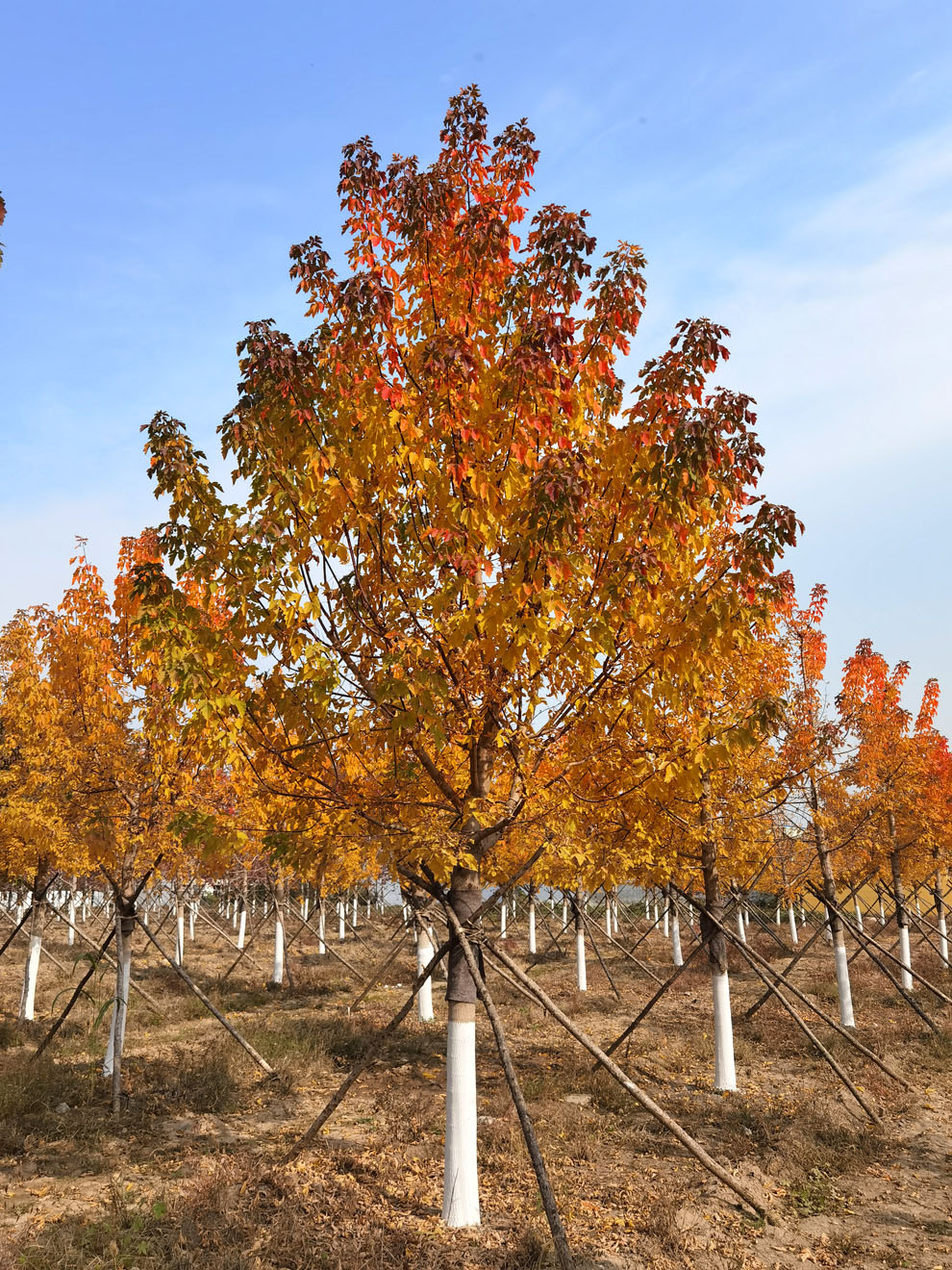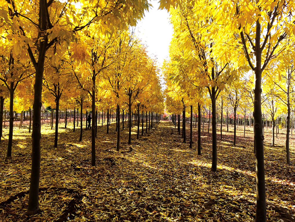 以上2张照片树种为美国红枫-马幕,秋季叶色金黄明亮,树体高大,可耐受7-8.5范围的土壤PH值,对城市污染有极高的耐受性。