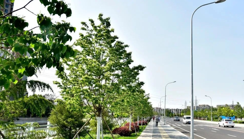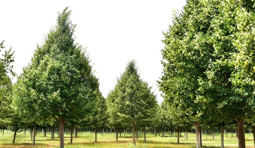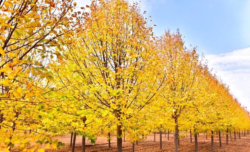 欧洲小叶椴‘绿塔’最显著的是外观特点,具有天然的金字塔树形。同等规格下的‘绿塔’树形基本一致,就好像一个模子里刻出来的。开阔的树冠,丰满的枝叶,粗壮挺直的树干,无需修剪的自然树形,将整体的外在美观展现出了“军事化”的统一性。这让其在行道树应用中,有更卓越的表现力,更持久的观赏性和良好的视觉延展效果。