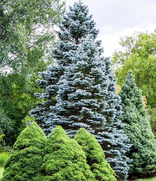 科罗拉多蓝杉的树形除了金字塔形外,还有球形蓝杉、柱状蓝杉、垂枝蓝杉等形态,每种形态在园林应用中可营造不同的观赏点,用处也不尽相同,可根据需求选择不同形态的蓝杉栽植。