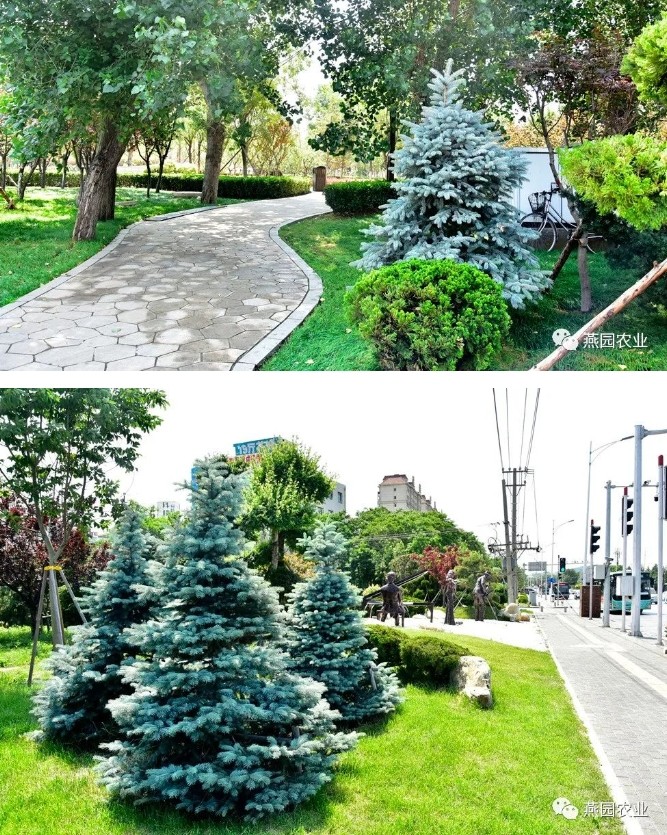 可见科罗拉多蓝杉在园林绿化中的“路子”十分广,在园林苗木选择上可使甲方无后顾之忧,基本满足各类甲方对绿化景观的不同要求。