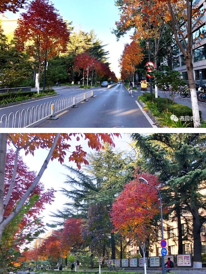 艳丽壮观的秋色是美国红枫最吸引人的地方。火红色的叶片,如兴奋剂一般注入到秋季的城市园林景观中,为肃穆的城市带去了妩媚的柔情和火辣的热情。且美国红枫树干笔直、树体高大挺拔,秋色的C位里定缺少不了它的身影。