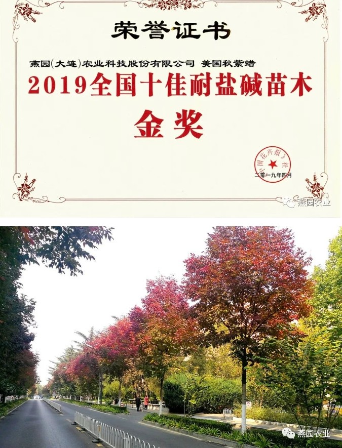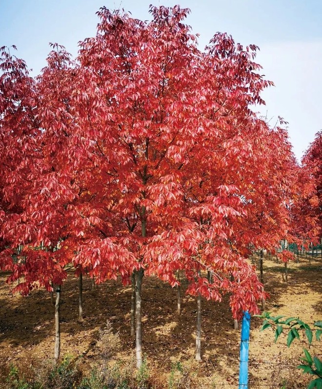 美国秋紫蜡白蜡属乔木,树体高大,树冠饱满,是唯一一个秋叶变红的白蜡品种。秉承了白蜡最突出的耐盐碱特点,可在PH值为5.0~8.5范围内正常生长,填补了国内盐碱地区园林景观彩叶用树的需求。且秋紫蜡还是环保型树种,可以吸收烟尘、二氧化硫及氯气等,对土壤的适应能力也较强,耐中度干旱,且抗逆性强变色稳定,非常适合城市造景应用。与其他白蜡不同的是,美国秋紫蜡不结种子,因此也是良好的清洁型树种。