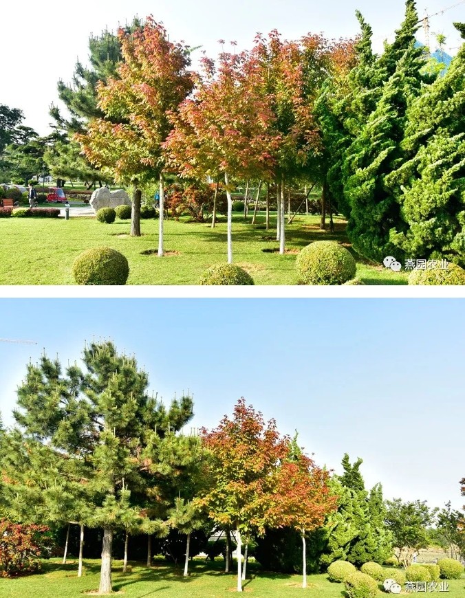 更有日本红枫、欧洲紫叶桦、垂枝樱花、挪威槭等彩叶苗木,在夏季葱郁翠绿的园林植物中都拥有各自独特的观赏价值,也能为夏季园林景观注入更多的观赏情趣。 |