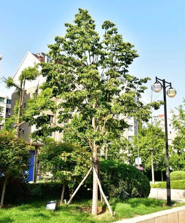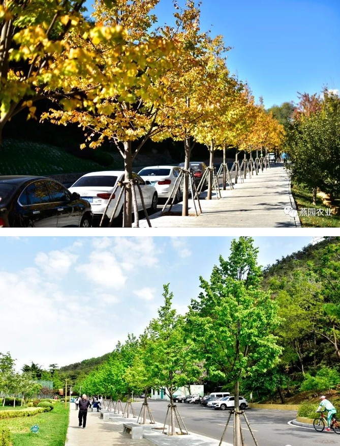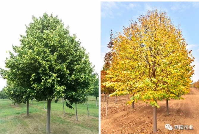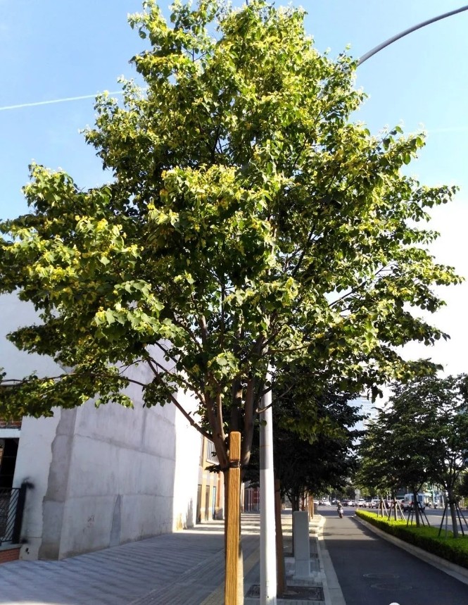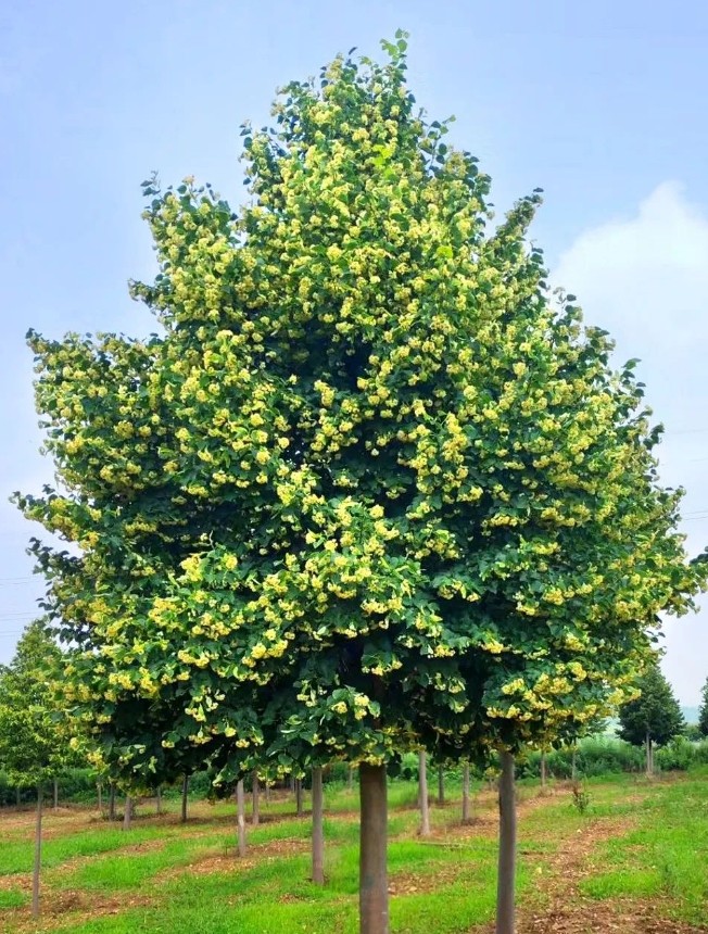 3欧洲小叶椴 是世界五大行道树之一。秋季叶色金黄落叶晚,景观效果持续久,初夏开淡黄色小花,花量大有花香,是优质的蜜源树种。因此欧洲小叶椴不仅可观秋叶,花季大量的黄色小花开满树间时,形成了别具韵味的观赏效果,用欧洲小叶椴打造的园林景观在夏季中可脱颖而出。