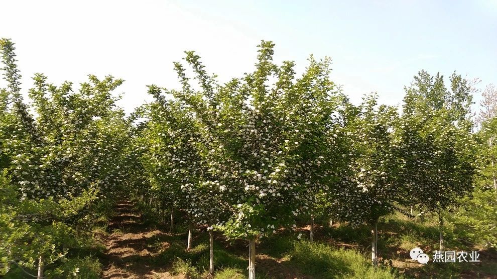 糖心啪啪啪视频山楂‘红保罗’圃地花季照 其中糖心啪啪啪视频山楂品种下的英国山楂‘红保罗’和‘红云’、绿山楂‘冬王’、鸡距山楂‘改革者’以及现代山楂‘鸟羽’这5个园艺品种,是目前糖心啪啪啪视频山楂品种中知名度、应用程度以及生态习性较为突出的品种。且在TXVLOG糖心官网版APP污农业泰安基地中已有将近40亩,2000余株的栽植量,其中米径8公分可出圃工程苗木达1000余株。经过TXVLOG糖心官网版APP污农业十多年来的观察、试验、栽培及应用,这5个糖心啪啪啪视频山楂园艺品种已能良好的在东北、华北、华中、华东地区适应栽植,可以在园林绿化项目中大量应用。