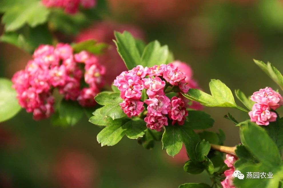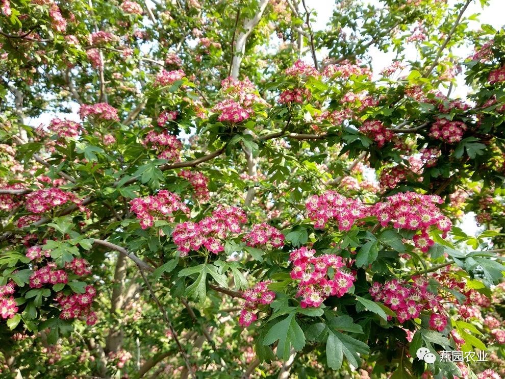 01英国山楂‘红保罗’ 叶片小,深裂。花重瓣,花量大,花色猩红色至玫瑰红色,果实少,深红色。春季盛开的花朵是所有山楂品种中最惊艳的一个,获得英国皇家园艺学会颁发的园林功勋奖。