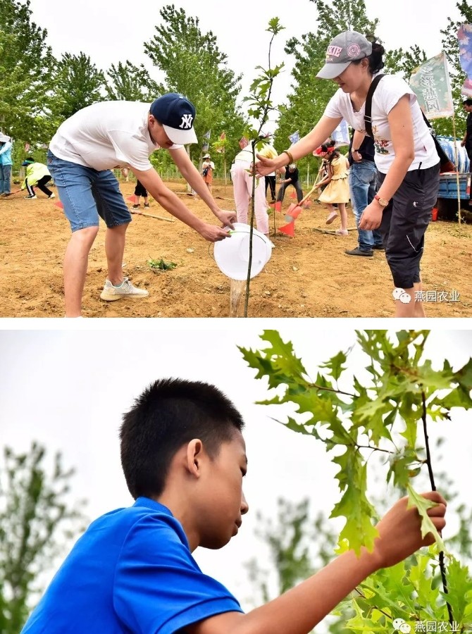 在如此给力的天气下,参加线下植树活动粉丝们的积极性与热忱度显得格外高涨,还不等基地技术员讲解完,已经有安耐不住干劲的粉丝拿起镐头铁锹开始了挖树坑...身旁树干笔直、树体高大的美国红枫随风摇曳,碧绿的叶片发出沙沙的摩挲声,好似在为这一众人加油鼓劲。呼吸着园区内富含负氧离子的空气,仿佛身上有使不完的力气。孩童眼中此时挥舞工具的父亲如超人般的形象,身躯伟岸、力拔山河。少年眼中挥洒汗水的自己此时是能独当一面、出类拔萃的样子,幼小的孩童也不甘示弱,像模像样的手握铁锹,气势十足。