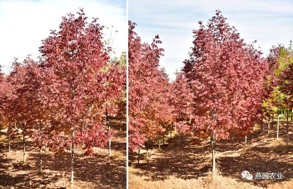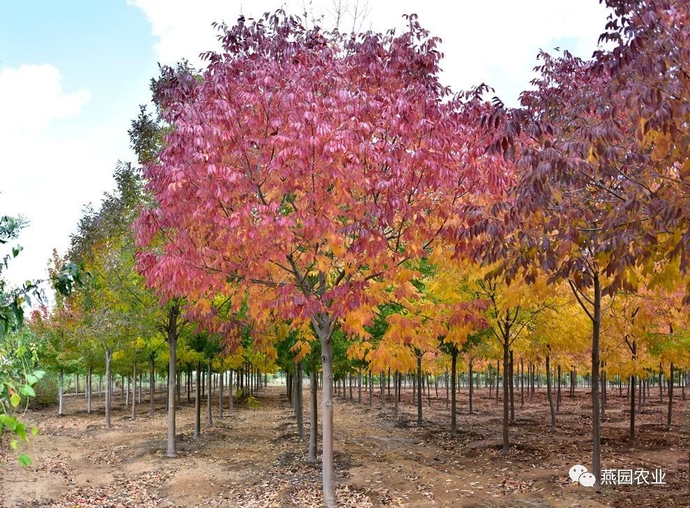①拉丁名:Fraxinus americana ②树形:树形为圆形,冠形饱满,树体高大雄伟。 ③叶片:夏叶碧绿色,秋季叶片由深紫色渐变至橙红色,色彩缤纷醒目,变色早,观赏性强。 ④适宜环境:喜光,对土壤的适应能力强,喜肥沃、湿润且排水良好的壤土。耐盐碱,耐涝,抗城市污染。 ⑤适应区域:辽宁南部及以南地区。 ⑥产品规格:Φ8~9CM,H580~650CM,P240~270CM。 ⑦推荐理由:变色稳定。