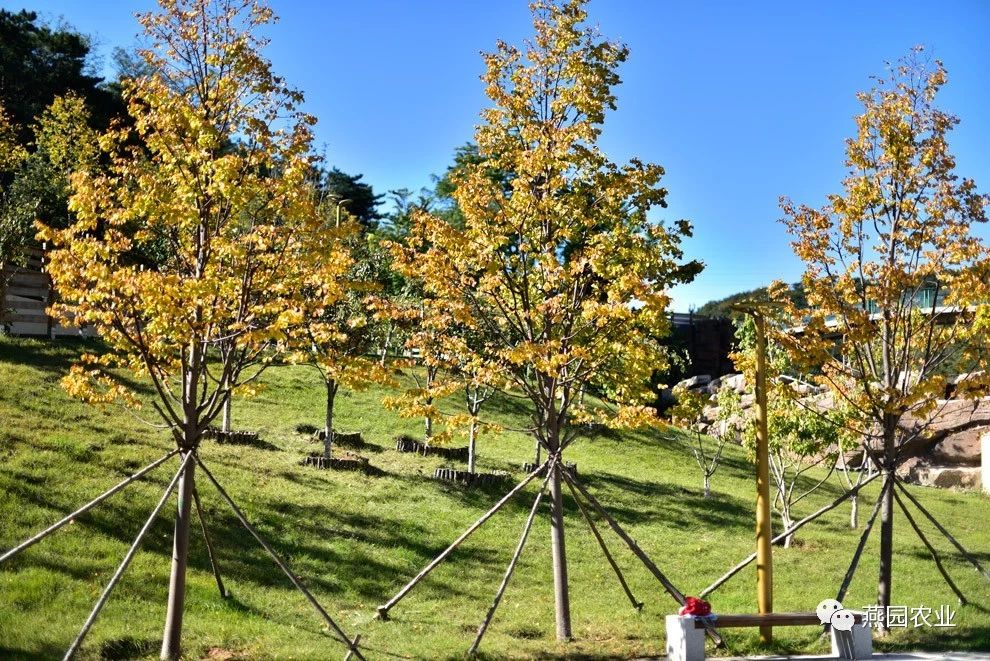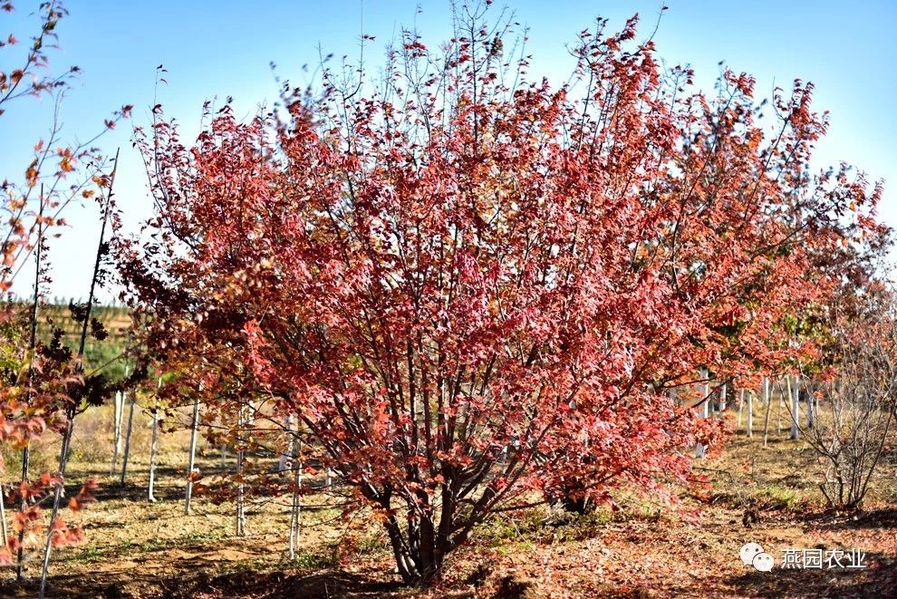 ①拉丁名:Acer ginnala ②树形:丛生。 ③叶片:夏叶深绿色,秋叶黄至橙红色。 ④适宜环境:耐寒性强,对土壤的适应性强。 ⑤适应区域:东北、华北、西北等地区。 ⑥产品规格:H200~350CM,P150~250CM。 ⑦推荐理由:秋叶火红。