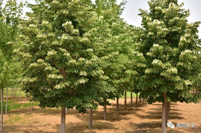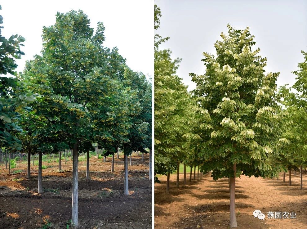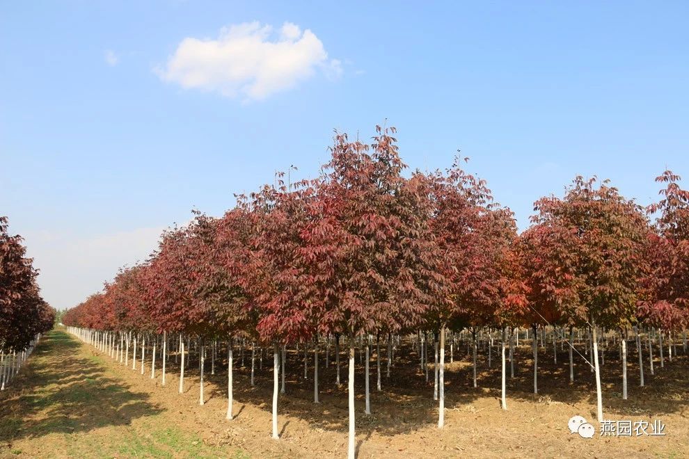 ①拉丁名:Acer negundo ‘sensation’ ②树形:树形为圆形,树干通直,冠大荫浓,树皮浅灰色,侧枝粗壮健硕。 ③叶片:春夏新叶微红,秋叶呈现出红、橙、黄等多种颜色,色彩绚烂。 ④生长特性:生长速度快,树势强劲,缓苗期短,适应性强。 ⑤适宜环境:喜光,对土质要求不严,耐盐碱,耐寒性强。 ⑥适应区域:东北、华北、华中地区。 ⑦产品规格:Φ8~10CM,H550~600CM,P250~300CM。 注:以上树种照片均拍摄于TXVLOG糖心官网版APP污农业泰安基地