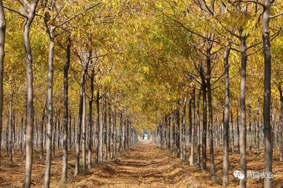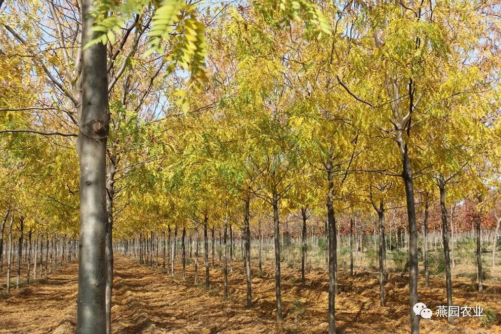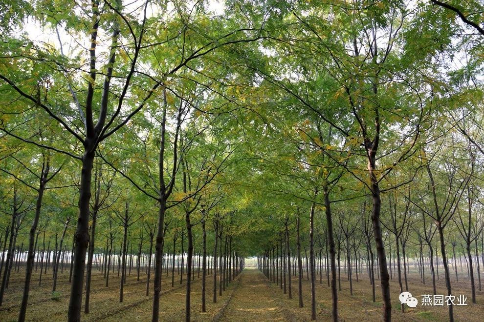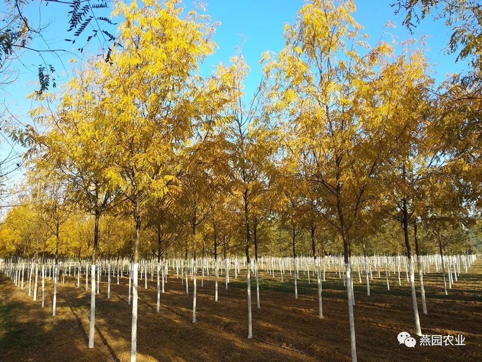 ①拉丁名:Gleditsia triacanthos ②树形:树形为开阔的金字塔形,冠幅宽广,分枝开阔,树干笔直。无刺,无籽。 ③叶片:叶为一回或二回羽状复叶,秋叶变黄。 ④适宜环境:喜光,稍耐荫,喜温暖湿润气候,对土壤要求不严,但在深厚肥沃且适度湿润的土壤中长势更好。适应范围广,抗风力强。 ⑤山东及以南地区。 ⑥产品规格:Φ8~10CM,H500~600CM,P250~300CM。