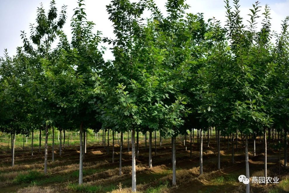 ①拉丁名:Quercus rubra ②树形:树形为圆形,树冠开阔。树皮灰棕色,有浅宽脊,老树树皮变为茶褐色。 ③叶片:叶互生,有7~9浅裂,长卵形至椭圆形,长12~24厘米,宽10~15厘米,叶片较大。新叶粉红色,覆有柔软的白色绒毛,老叶深绿色,光滑,叶上面有光泽,秋叶变为鲜红,冬叶变为棕褐色,有时枯而不落。 ④适宜环境:生长速度较快,能适应各种土壤和气候环境,更喜欢肥沃、湿润且排水良好的微酸性沙壤土。树龄可达500年左右。 ⑤适应区域:辽宁南部及以南地区。 ⑥产品规格:Φ8~10CM,H550~600CM,P250~300CM。