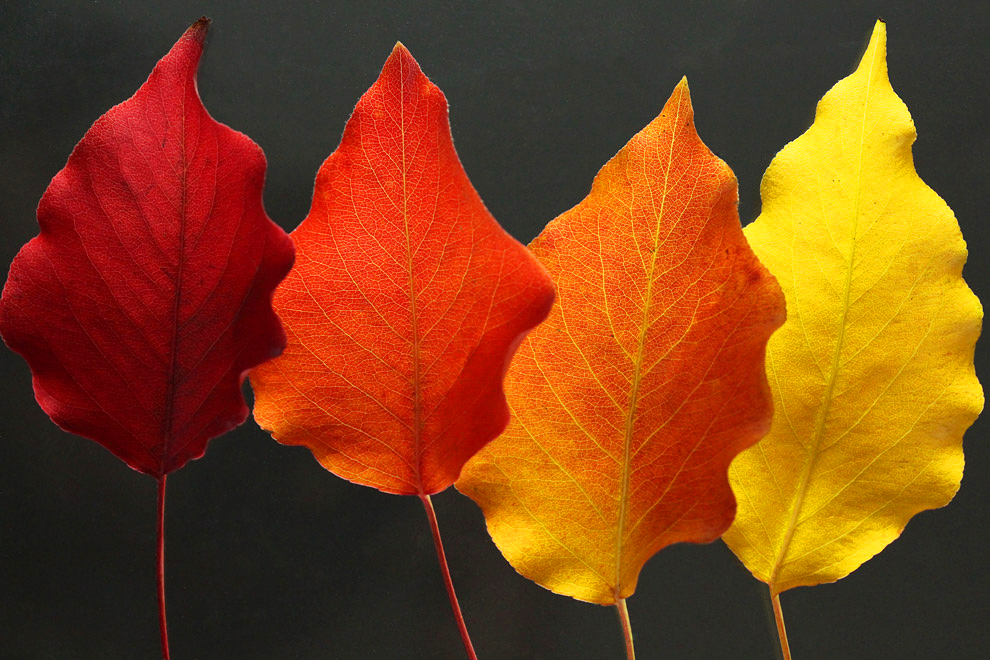 叶片椭圆形,长4~8厘米,叶表深绿色有光泽,叶背颜色稍浅;秋季叶色变得明亮,由黄色和橙色,到红色、粉红色、紫色和青铜色,有时,同片叶子上会呈现出多种颜色,变色期较晚。