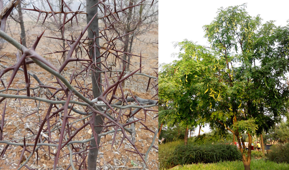 之所以称美国无刺皂荚是皂荚的园艺升级版,主要还是因为后者较前者有两大突出优势:①无刺;②变色。美国无刺皂荚是美国皂荚(Gleditsia triacanthos)无刺园艺品种的统称,主要有‘旭日’、‘北方赞誉’、‘遮阴王’、‘帝国’、‘一线天’和‘太阳舞’等。