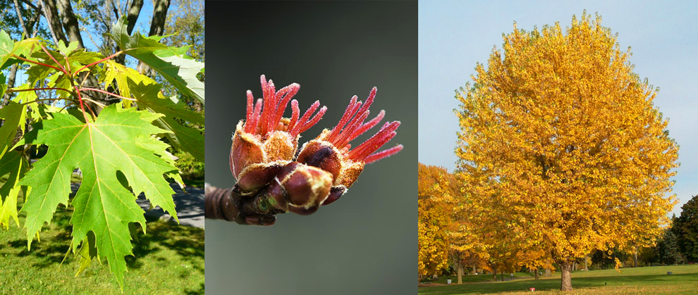 原产自欧洲东部和西部及亚洲西部,树高可达20~30米,干径可达1.5米,树冠圆形。树皮灰褐色,有浅槽。叶对生,掌状5裂,长7~14厘米或8~20厘米,叶柄长8~20厘米,秋季变黄,有时变为橙黄色。15~30伞状花序,萼片5,黄色,花瓣黄绿色,早春开花。果实为翅果,翅长3~5厘米,夹角近180°。理想状态下,挪威槭的寿命可达250年,但在城市环境下较短,有时甚至只有60年。挪威槭有十余个园艺品种,比较知名的有‘普林斯顿黄金’和‘红国王’等。