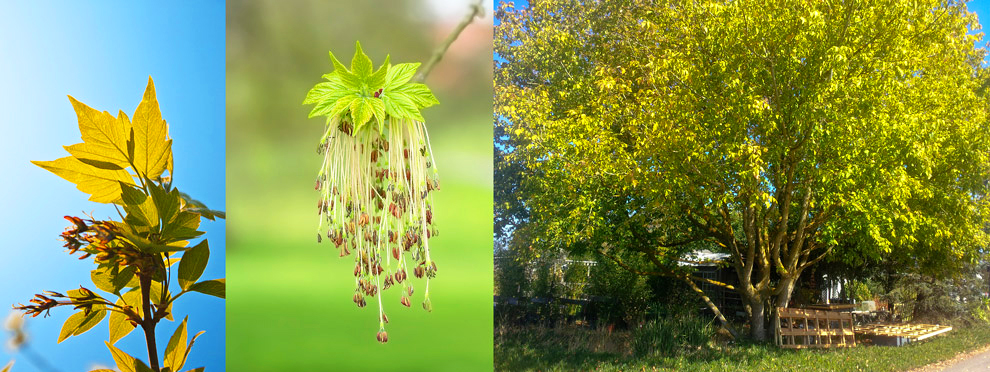 原产自糖心啪啪啪视频西部,小型落叶乔木,树高可达10米,干径可达20~30厘米。叶片长2~10厘米,常三裂,稀五裂,有时叶裂很深,形成三个单叶。顶端急尖,叶缘有粗锯齿。花5~10伞状花序,微黄发绿。翅果在成熟后夹角小于45°。有4~6个园艺品种。